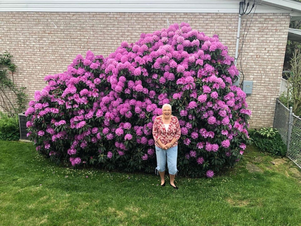 Вот как выглядит растение, которому 45 лет, по сравнению с бабушкой. Этот куст посадила её мама.