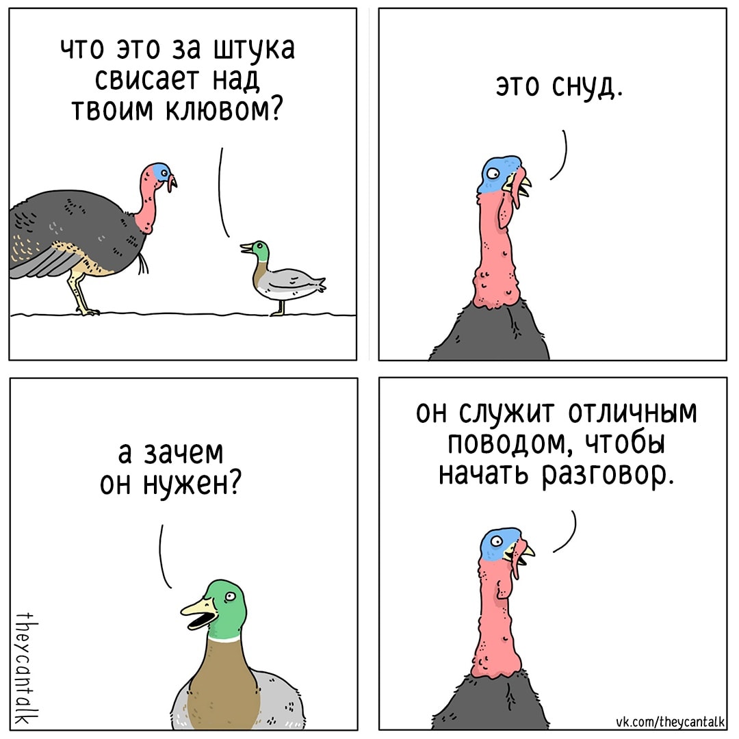 Известный комиксист и художник американец Джимми Крейг, благодаря своему живому воображению представил, о чём именно могли бы разговаривать между собой зверюшки, если бы доходчиво и по делу изъяснялись. Предлагаем вам взглянуть на плоды его творчества и попутешествовать по миру, где сарказм, чувство юмора и рассудительность — главное оружие не людей, а птиц и зверей.