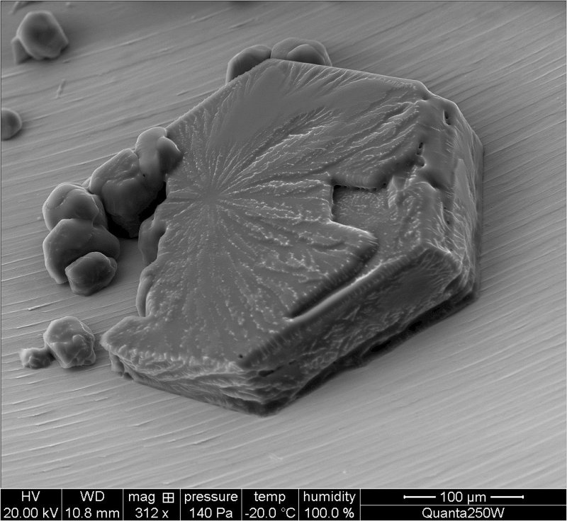 Гематит — это минерал, известная железная руда. На этом снимке видно его структуру, увеличенную в 200 раз. Напоминает осколки льда, не правда?