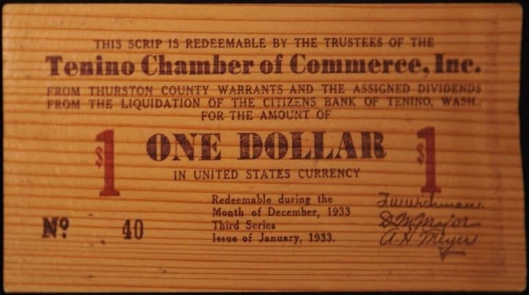 Такие использовались в городе Тенино, штат Вашингтон, США, во время Великой депрессии 1930-х годов.