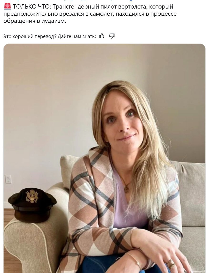 В Белом доме уже подтвердили, что вторым участником воздушно-транспортного происшествия стал военный вертолет. Гражданское судно — это лайнер Bombardier, выполнявший рейс № 5342 компании American Airlines из Канзаса в Вашингтон.