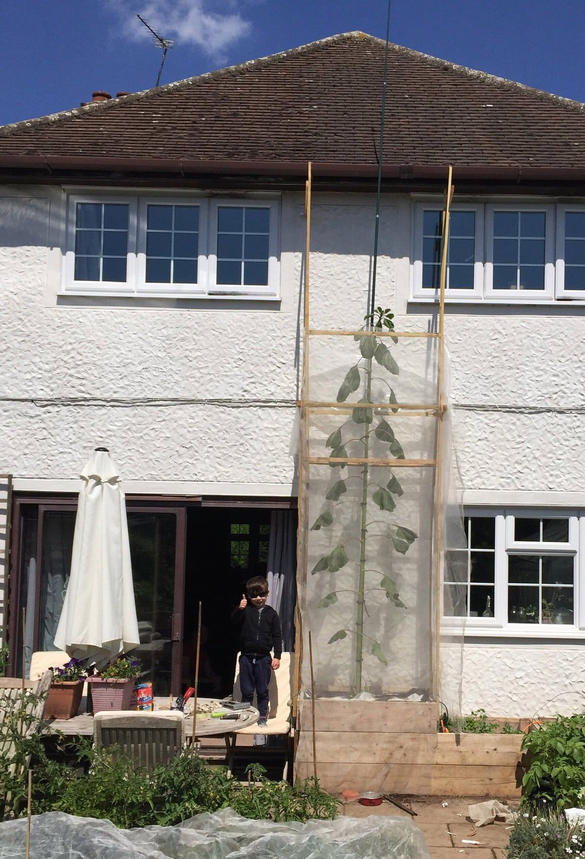 4-летний Стеллан Смит из британского городка Станстед Абботс в графстве Хартфордшир попросил у своего отца Дугласа вырастить такой большой подсолнух, чтобы тот был высотой с их дом.