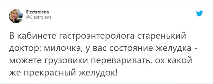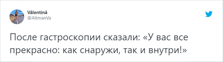Поход к врачу — событие не из приятных. Сами доктора прекрасно это понимают, поэтому стараются немного разбавить атмосферу шутками или комплиментами. Пользователи Твиттера рассказали, какие приятные вещи им говорили врачи и в какой ситуации эти слова были произнесены. Фразы о прекрасном внутреннем мире после гастроскопии, красивые швы и другие комплименты — тут есть всё!