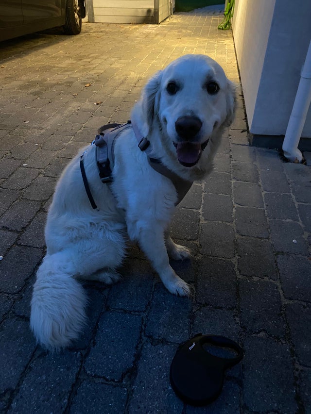 Моя собака увидела кошку и понеслась за ней с такой силой, что оторвала поводок