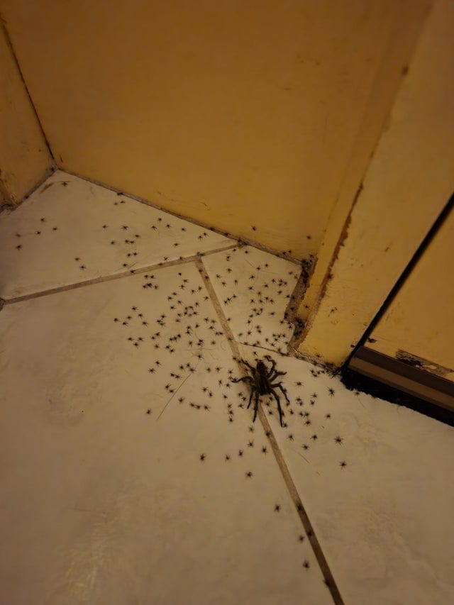 Когда брызгаешь паука спреем от насекомых, а из него выбегает толпа его детишек