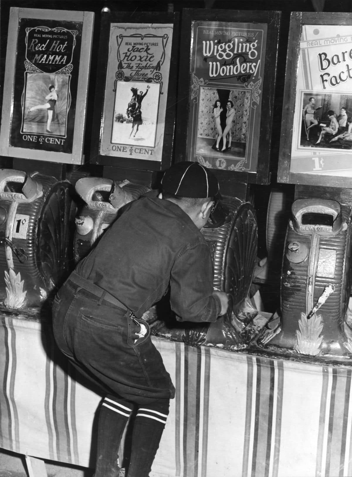 Мутоскопы — специальные автоматы, расположенные в публичных местах, для просмотра коротких движущихся кинороликов.