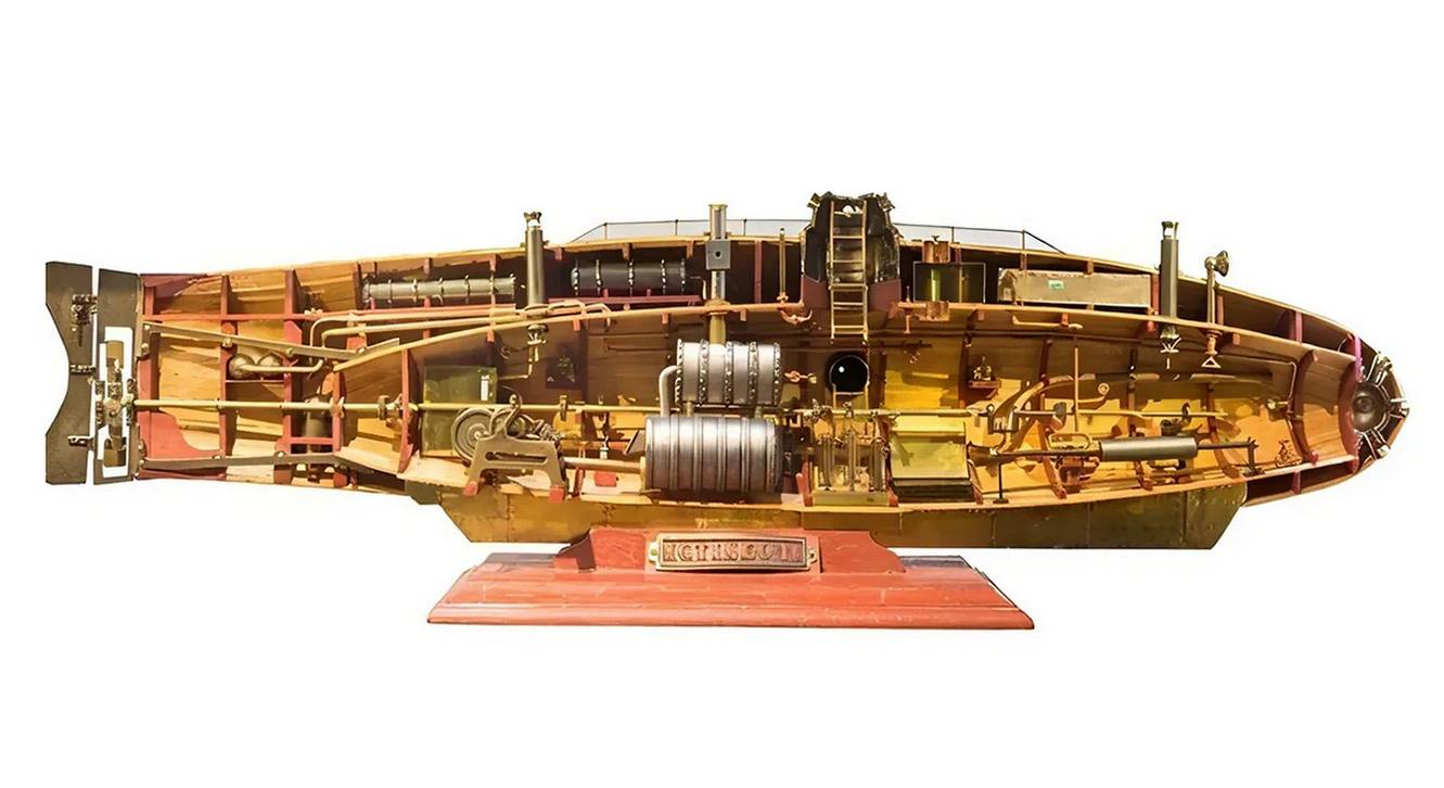 Но главное новшество — в двигателе. Во время движения под водой он сжигал смесь цинка, диоксида марганца и хлората калия. Химическая реакция вырабатывала тепло для создания пара и одновременно выделяла кислород — тем самым решая сразу две задачи: как двигаться и как дышать. А на поверхности подлодка могла использовать стандартный паровой двигатель, работающий на угле.