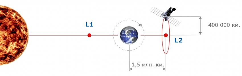 Александр Лутовинов: Точка Лагранжа L2 для нас довольно необычна, ни один отечественный космический аппарат ещё туда до «Спектр-РГ» не летал. Хотя другими космическими агентствами эта точка уже давно начала активно использоваться. Её преимущество в том, что вы находитесь в очень комфортных фоновых и тепловых условиях.
