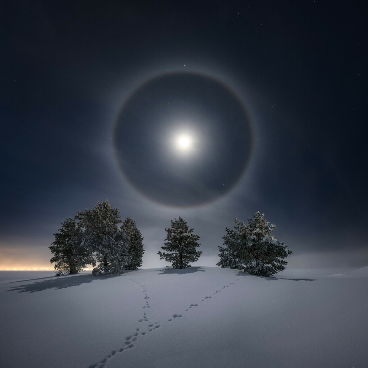 2 место в категории «Наша Луна», 2021. Лунное гало. Снято в Эстерсунде, лен Емтланд, Швеция. Автор Горан Стрэнд