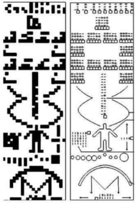 Авторы послания Фрэнсис Дрейк (кстати, автор знаменитого уравнения, позволяющего рассчитать количество планет во Вселенной) и Карл Саган (астроном, экзобиолог и известнейший на Западе популяризатор науки, каким у нас был академик Капица) зашифровали в нем данные о биохимии, структуре ДНК, населении Земли, Солнечной системе и собственно телескопе Аресибо. Послание достигнет потенциальных адресатов через 25 тысяч лет. И столько же потребуется времени на ответ.