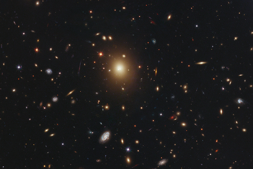 IC 1101 — тоже эллиптическая галактика. Собственно, не случайно рекордсменами становятся именно эллиптические галактики. Галактики этого типа самые старые, они живут очень и очень давно — пережили огромное количество столкновений и слияний с другими, а каждое слияние добавляет галактике новых звезд и размера.