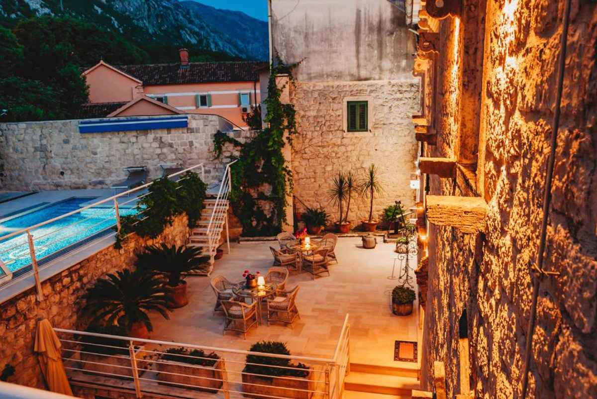 Здание бутик-отеля Palazzo Radomiri было построено в начале XVIII века, во времена Венецианской республики. Очевидно влияние итальянского барокко. Здесь жила семья состоятельных судовладельцев и моряков Радимири. Их владения даже были отмечены на карте работы венецианского географа Винченцо Марии Коронелли. Копия карты хранится в гостинице, а оригинал — в Морском музее Котора.