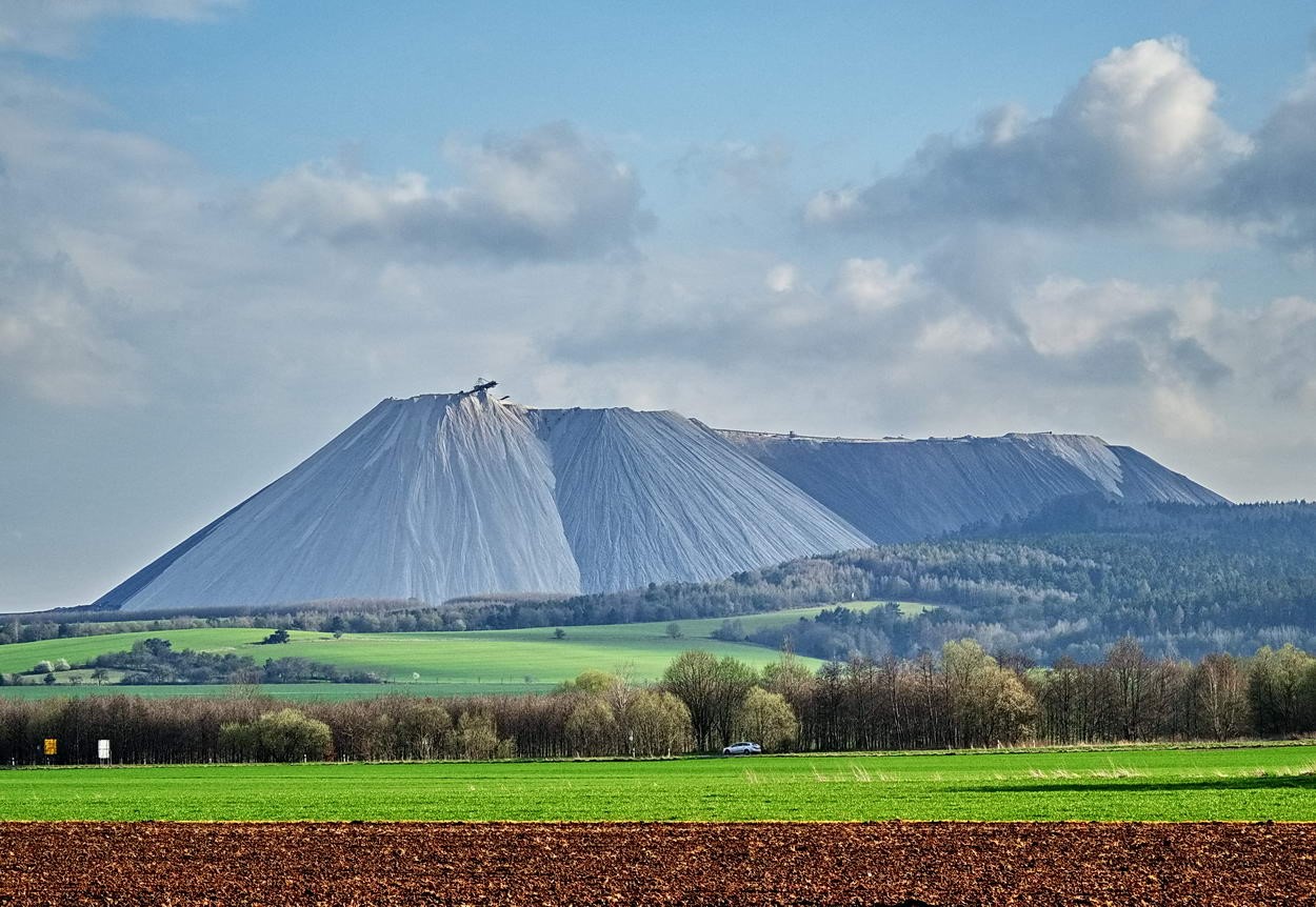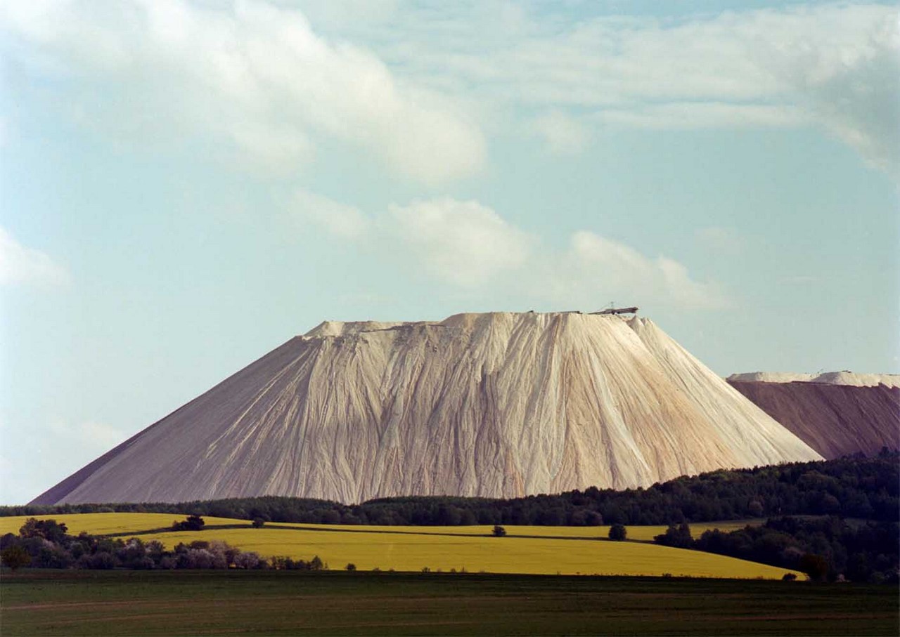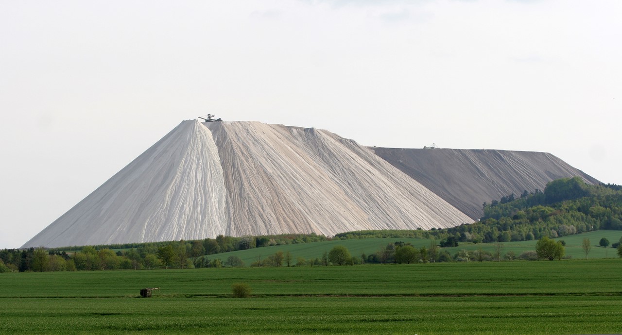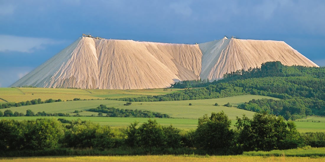 Калийная добыча дает смесь поташа и хлористого натрия, с содержанием калия от 20% до 35%. Таким образом, на каждую тонну восстановленного поташа производится несколько тонн хлорида натрия. Его, как отходы производства, сбрасывают в нескольких местах по всему региону. Таким образом и вырастают эти снежно белые горы, содержащие до 96% хлорида натрия.