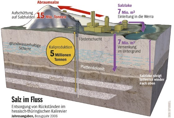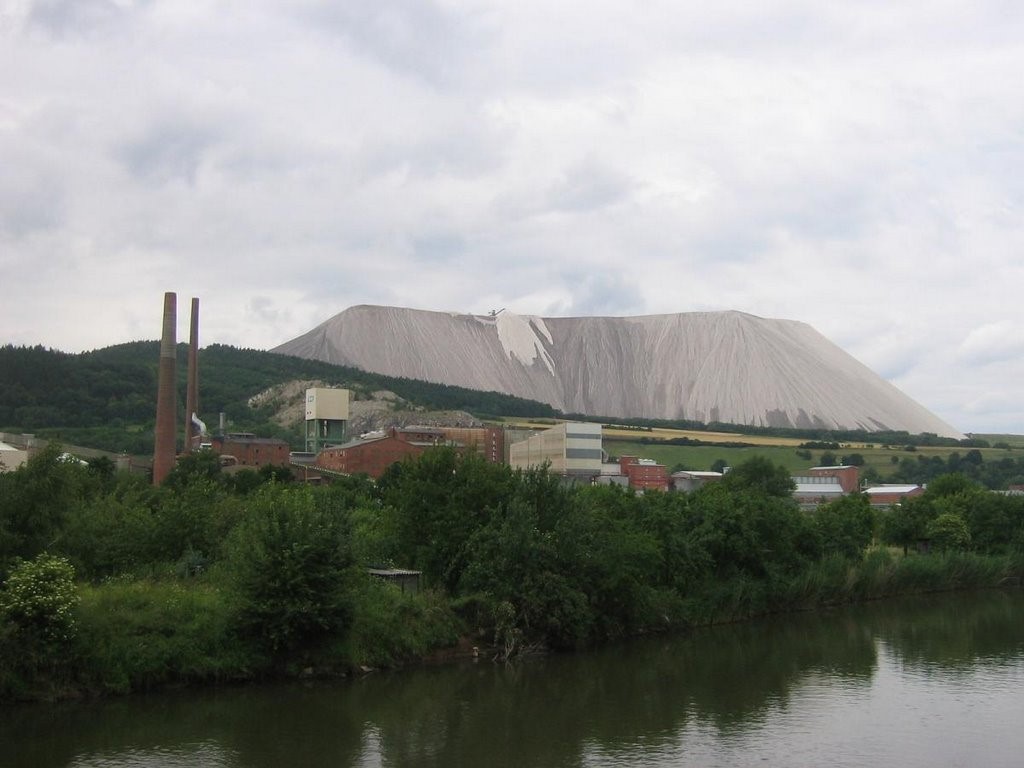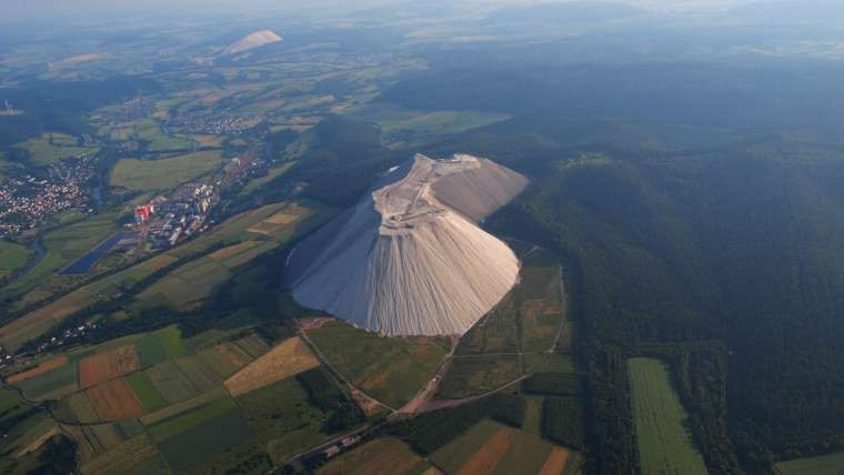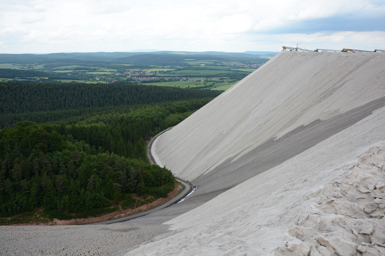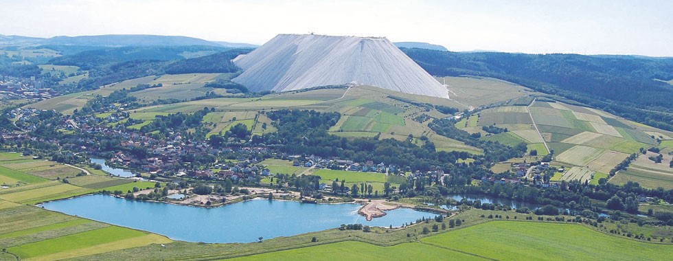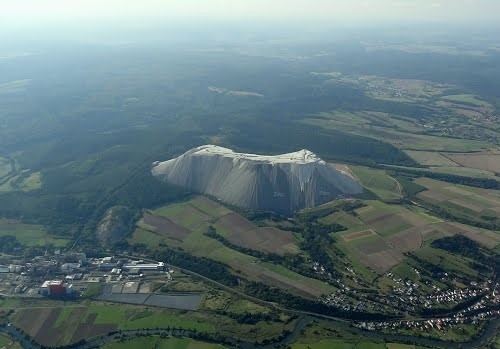 Калийная добыча дает смесь поташа и хлористого натрия, с содержанием калия от 20% до 35%. Таким образом, на каждую тонну восстановленного поташа производится несколько тонн хлорида натрия. Его, как отходы производства, сбрасывают в нескольких местах по всему региону. Таким образом и вырастают эти снежно белые горы, содержащие до 96% хлорида натрия.
