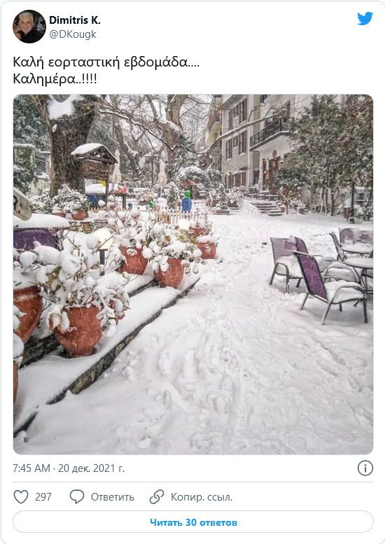 «В Салониках, где я живу, каждую зиму идет снег, но обычно он тает за несколько дней»