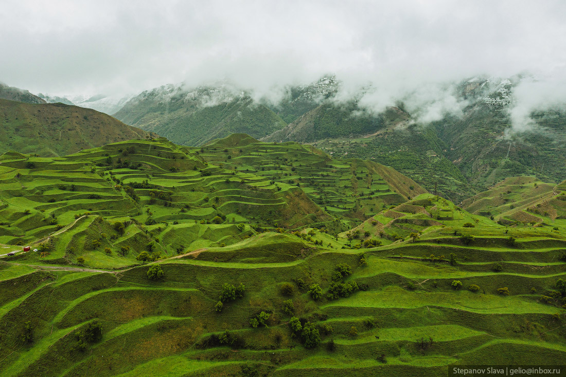 18. Чохские террасы — рукотворное чудо Дагестана. Неизвестно, когда местные жители освоили террасное земледелие, но ландшафт сохранился до сих пор.