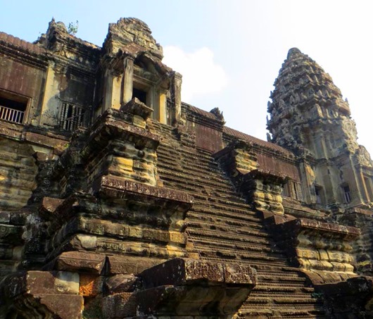 Храмовый комплекс Ангкор-Ват в Камбодже — знаковое место для буддистов со всего мира. Нет ничего постыдного в том, чтобы карабкаться по ведущим к самому верхнему храму ступенькам на четвереньках или с помощью специальных веревок, ведь уклон у лестницы — примерно 70 градусов.