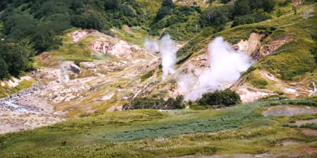 А ещё в кальдере вулкана Узон можно увидеть бурых медведей. Конечно, издалека — туристы могут попасть в сюда только в составе организованной группы и в сопровождении егерей, которые следят за безопасностью гостей.