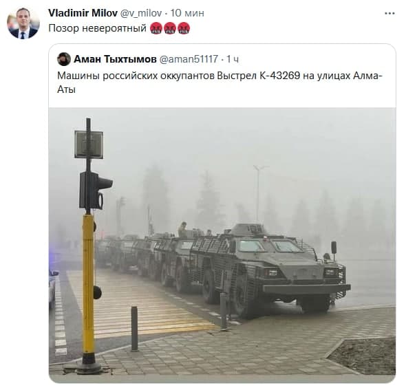 Драть, Милов — это бронеавтомобили КамАЗ-43269 «Выстрел» Национальной гвардии Республики Казахстан, закупленные уже весьма давно. Верить дуракам из ФБК могут только любители покушать гогна, потому что у них всё вот так — как скажут что-то, так всенепременно соврали.