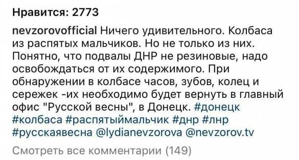 В Сети идут бурные обсуждения, из чего делают донбасскую колбасу. Само собой, самыми популярными и частыми являются шутки про производство из врагов, не будем указывать национальность (о которой несложно догадаться) дабы не нарушать законодательство. Вот и когда-то популярный журналист Неврозов это подтверждает, отвлекшись от лошадей.