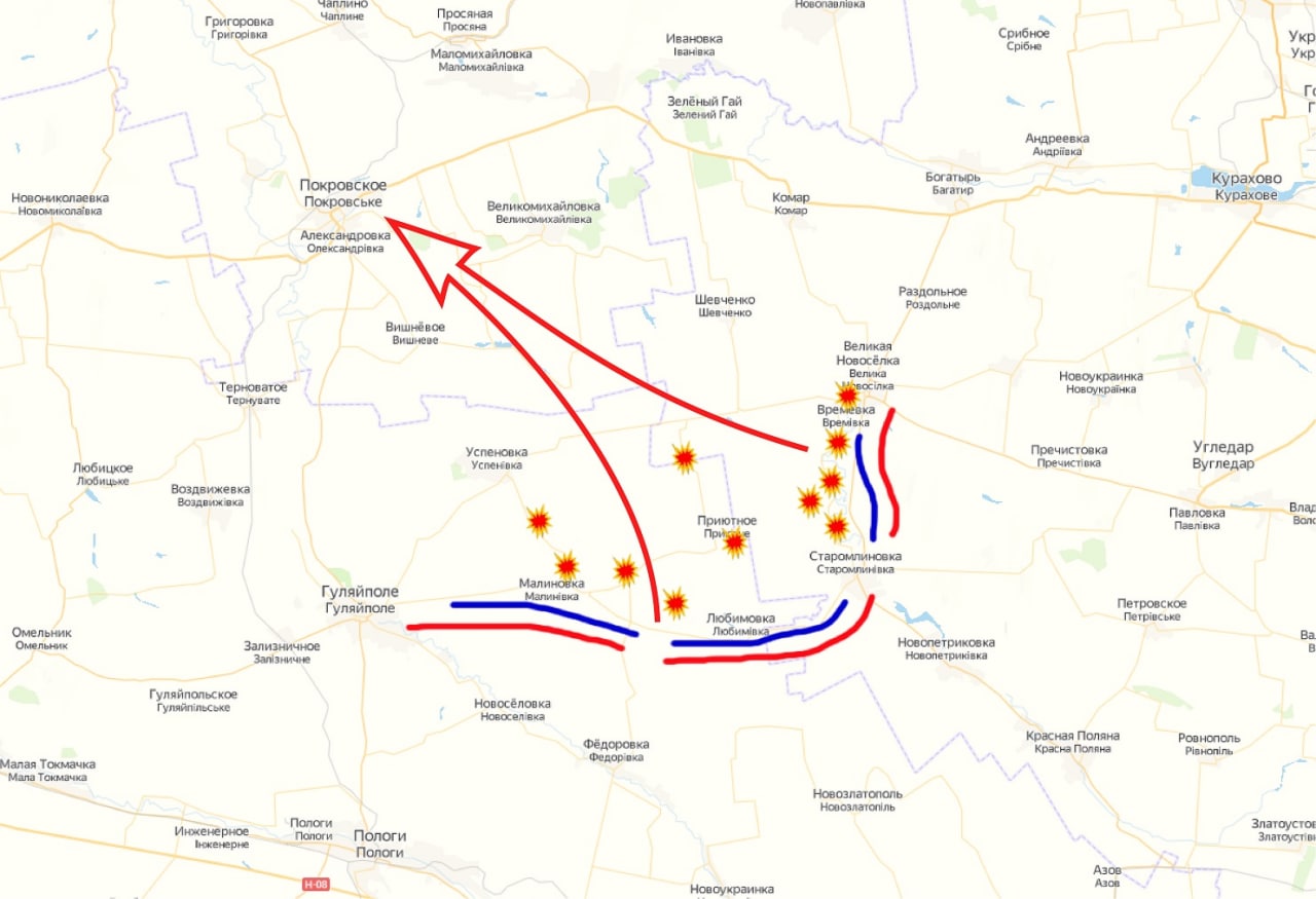 ВС РФ развили наступление к югу от н.п.Пески-Радьковские и взяли Яцковку и Рубцы. Развивается наступление в сторону Александровки.https://t.me/rybar/31462