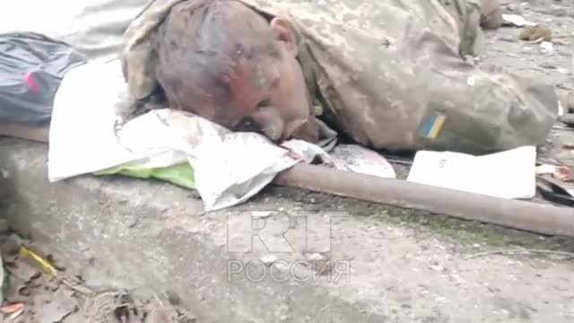 На кадрах военнослужащий морской пехоты ВСУ с огнестрельным ранением в затылок и листовками-пропусками, которыми не успел воспользоваться для сохранения своей жизни.