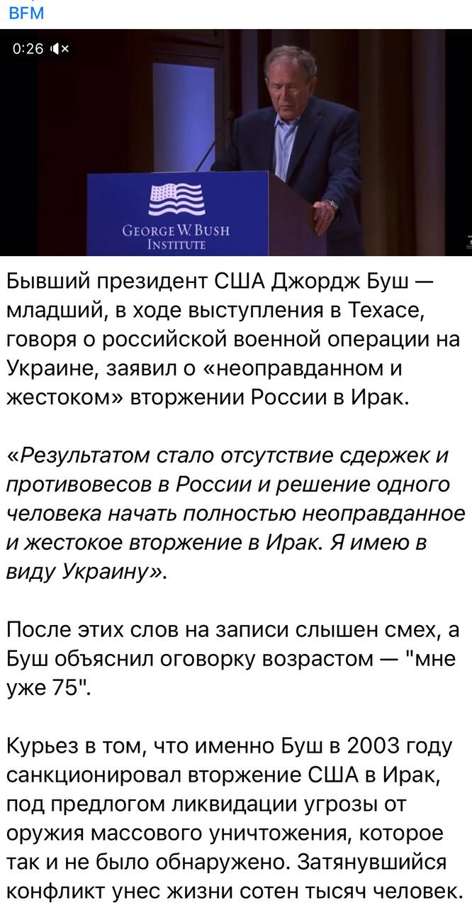 Интеллектуальный пранк/ Джордж Буш на марафоне «Новые Горизонты» / Расширение НАТО/ Биолаборатории
