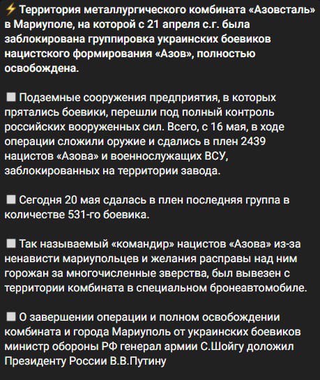 Итоговое видео по сдаче ВСУ и Азова из Азовстали: www.youtube.com/watch?v=gqUmzGxQiUE&feature=emb_logo
