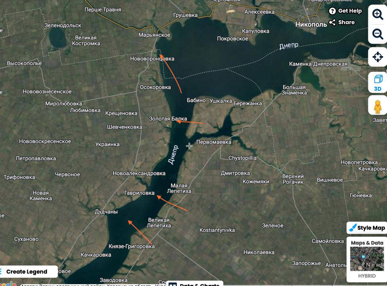 Но идем далее. На рубеже Новая Каховка — Никополь (Каховское Водохранилище) наши ДРГ неожиданно активизировались в районе населенных пунктов Дудчаны, Михайловка и далее почти до Марьянского (см. Карту 2).