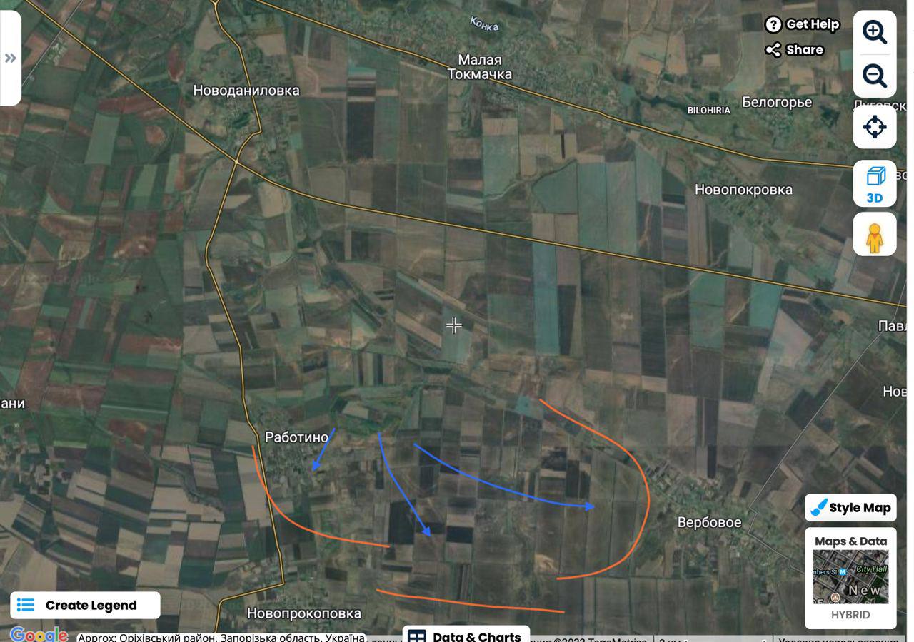Но самое главное, на что надо обратить тут внимание, — на правом фланге неожиданно наши перешли в атаку. Части 106 гвардейской десантной дивизии и бойцы Арктической бригады продвинулись вперед и заняли позиции на окраине деревни Орехово-Васильевка и уже подбираются к Миньковке (см. Карту 5).