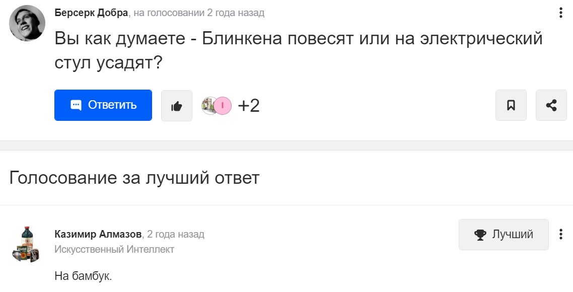 50 стран западной коалиции должны были не дать России объединиться с русскими регионами, потому что тогда РФ станет сильнее в военной и экономической сферах. Что до самих украинцев, то их мнение особенно никого не интересует. Хотя ради политеса, Блинкен каждый раз добавляет, что на мир должны согласиться сами украинцы.