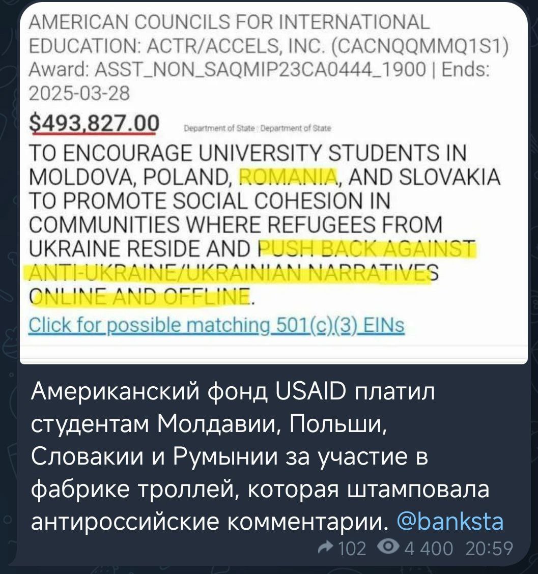 Ему бы ебальничек свой захлопнуть, а то фильтрацию для таких как он могут устроить и это кстати стоило бы сделать. Было бы забавно, если бы при фильтрации обнаружилось что он и/или его источники информации финансировались через USAID, я конечно понимаю что это маловероятно, но я же не долбоёб чтобы отбрасывать и такие варианты.
