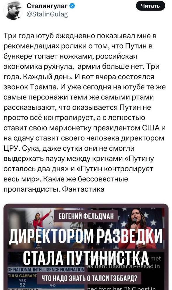 3. Советник Трампа Уолтц заявил, что Киеву надо заткнутся и подписать соглашение о передаче недр под управление США. Учитывая, сколько США уже потратили на Украину. Отказ от подписания будет ошибкой.
