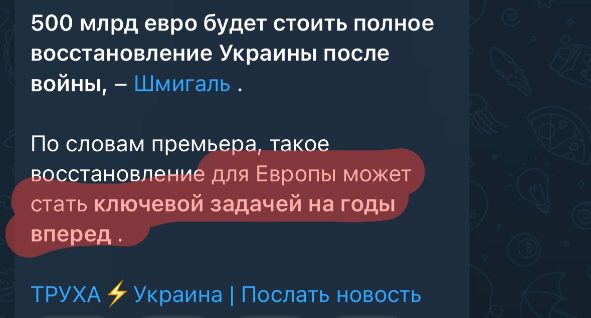 Глава Совета резервистов Сухопутных войск Украины Тимочко: «Киев должен воспользоваться паузой в несколько лет, чтобы подготовиться к следующей фазе войны, которая будет обязательно. Украине нужно будет в сжатые сроки провести общую подготовку населения, а также расширить ракетные и беспилотные программы».