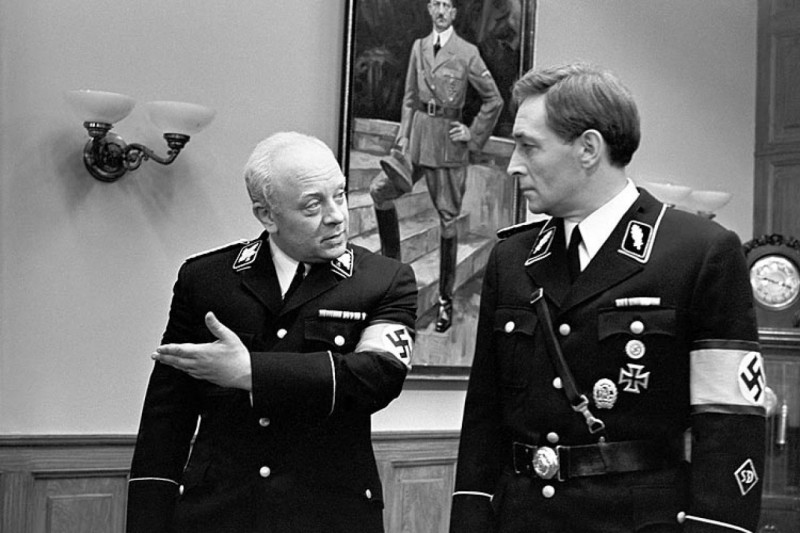 В романе (не в сериале) Юлиана Семенова «Семнадцать мгновений весны» главный герой свободно разъезжает на автомобиле марки «Хорьх». Между тем эта суперпрестижная машина полагалась только номенклатуре фашистской партии и высшим офицерам вермахта. Лишь эта небольшая элита германского общества имела право и на номерные знаки с тремя буквами и тремя цифрами. Штандартенфютер СС Штирлиц, как и остальные автовладельцы, в реальной жизни должен был бы довольствоваться одной, в крайнем случае, двумя буквами на своей машине, но никак не номером ВКР- 821, какой по воле автора красовался на его «Хорьхе». И радистка Кэт никак не могла бы дозвониться в пригород Берлина Бабельсберг по телефону 42-75-41, потому как номера этого района начинались с цифры 8. Впрочем и сам Штирлиц, служивший, как известно, в Главном управлении имперской безопасности (РСХА) и неоднократно появлявшийся в коридорах, кабинетах и даже подвалах здания этого управления на Принц-Альбрехтштрассе, вряд ли мог здесь встречаться с папой Мюллером, поскольку в период происходящих событий (с 12 февраля по 18 марта 1945 года) здания уже не существовало: оно было разрушено авиацией союзников еще 31 января. Впрочем, на этом месте герои романа и телесериала все же могли встретиться. Скажем, на субботнике по расчистке развалин этого здания. И тогда подобная картина могла бы выглядеть примерно так.