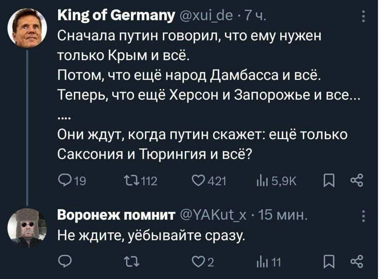 Уже можно готовиться к боям за Харьков и Сумы. Не будет никакой «буферной зоны» — это уже станут их территории. Русские даже не скрывают, что планируют наступать дальше — заместитель командира 3 ОШБр ex «Азов*» Максим Жорин.