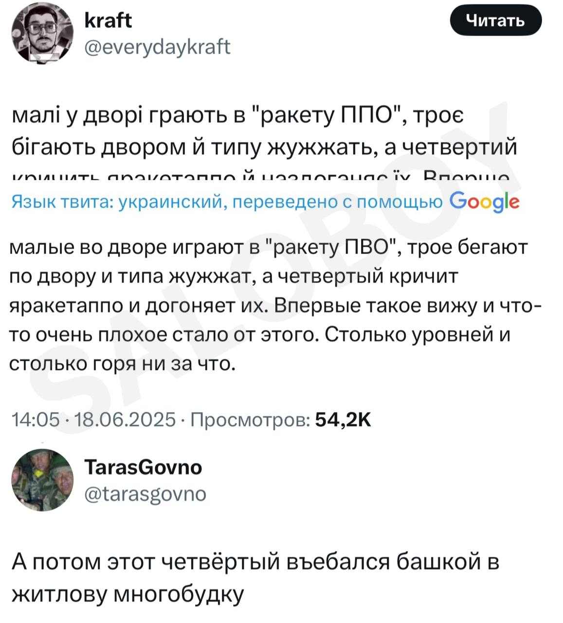 Сейчас проводят геноцид своих же граждан по всей стране, следуя традиционному украинскому гену фашизма и убийств. Давайте добавим, что с 1991 Украина принимала участие во всех конфликтах против России