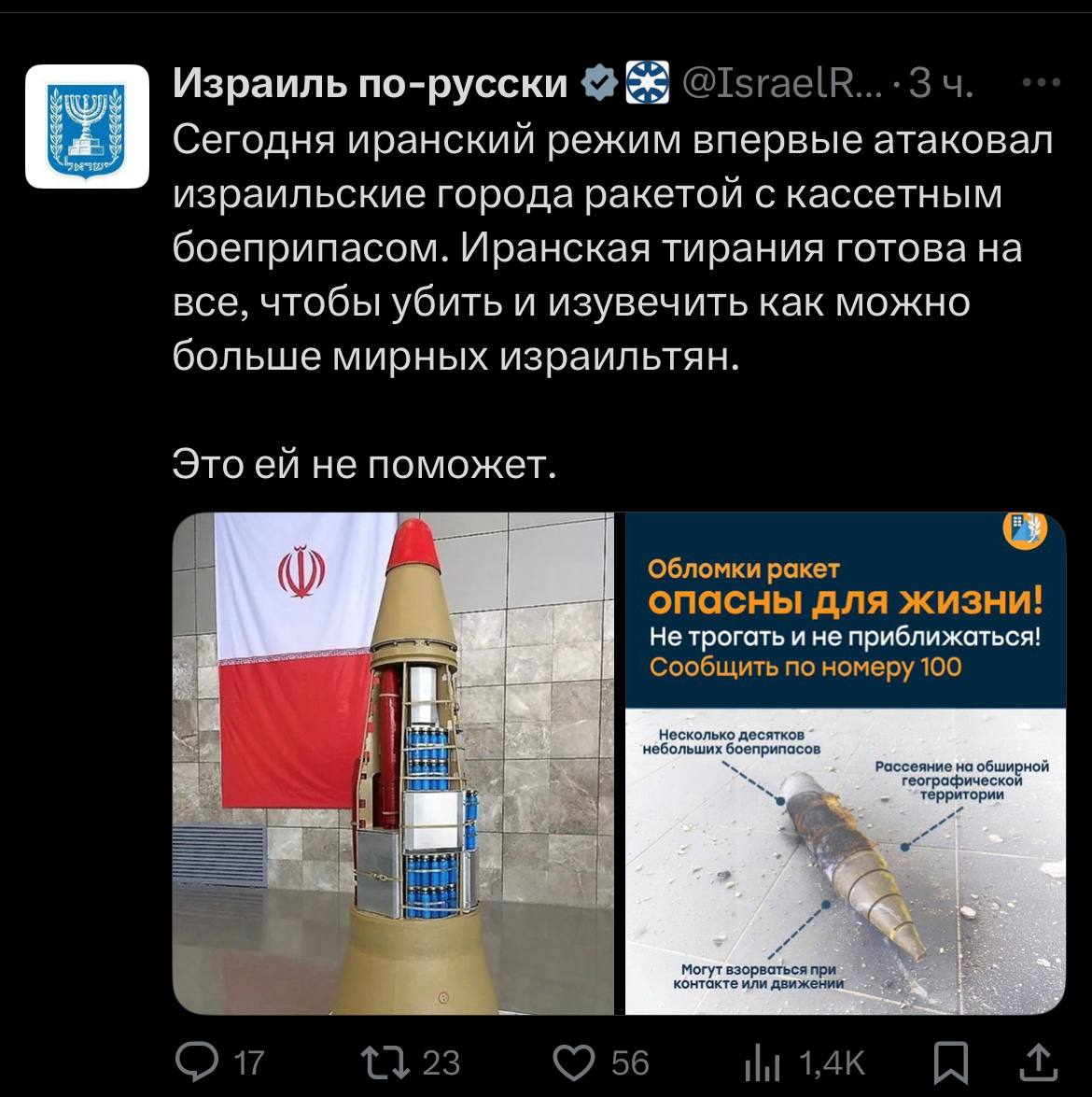 Иран выпустил около 20 ракет по Израилю, медики выехали в 10 предполагаемых мест прилетов, сообщает 12-й канал. Одна из ракет упала в Тель-Авиве, данные о местах ударов уточняются (1-3 видео). Удар пришелся и по Хайфе, ранены минимум два человека, сильно поврежден жилой дом (4 видео). Спасатели ищут людей под завалами, в городах слышны сирены.