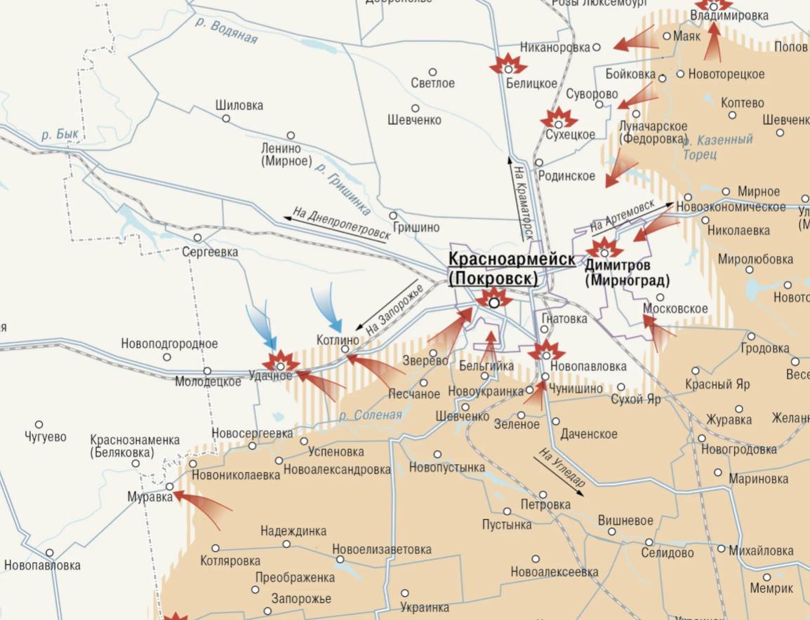 Самоцелью операции в Днепропетровской области не являются — во всяком случае, по наблюдаемому прямо сейчас. Но и ни о какой нерушимости текущих границ (как в моменте, так и тем более по итогам) в этом месте, как и в любом другом, речи быть не может: приоритету устранения исходящей от хутора угрозы подчинены все остальные соображения. И поэтому не позднее, чем когда оборонительный район Красноармейск-Димитров станет дотационным и не имеющим стратегического значения, Днепропетровскую область, в отсутствие этой фланговой угрозы, может ждать много нового и интересного. Синергетический эффект для освобождения оставшейся части Запорожской может получиться самым замечательным.
