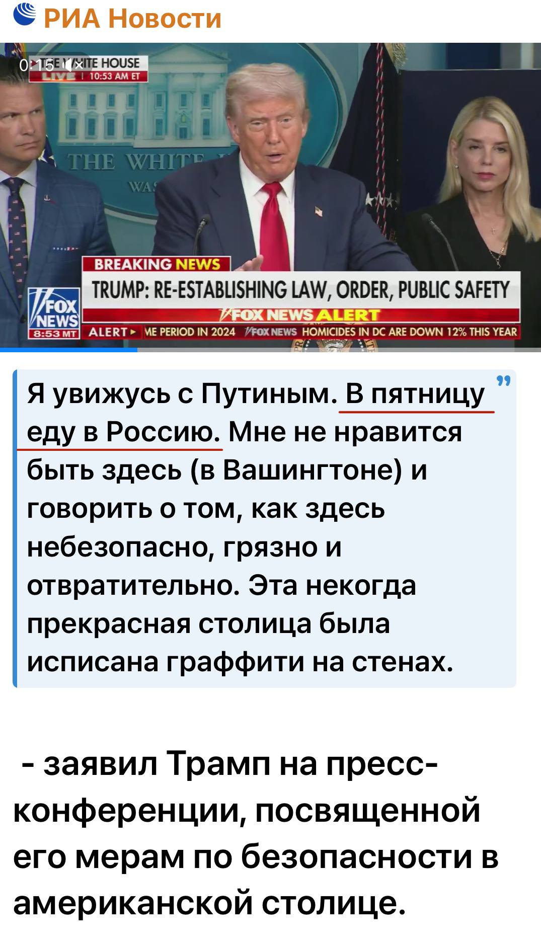 Но в этом фрагменте куда прикольнее то, что он говорит, что он, вообще-то, с Путиным собирается встретиться, и на этом фоне ему стыдно тут (на брифинге) обсуждать, какой небезопасной и отвратительной стала столица США.