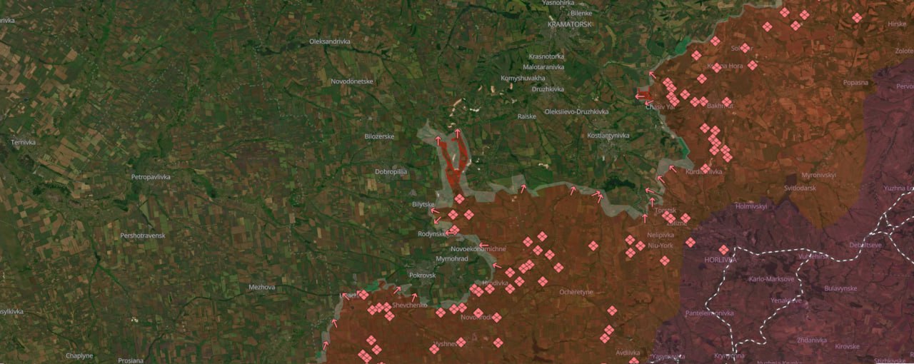 Российские войска стремятся выровнять линию фронта на рубеже Катериновка — Клебан-Бык — Дылеевка, сформировав тем самым плацдарм для наступления на Константиновку с юга.