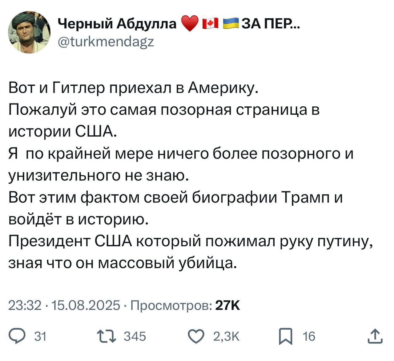 Из густого тумана, которым и сейчас затянуты ход и особенно исход шоу в Белом доме, более или менее уверенно можно вытащить довольно немногое. Что вопрос прекращения огня с повестки Трампа снят окончательно. Что ни к какому общему (даже внутри себя и подавно общему с нами) решению ни по какому из коренных вопросов там не пришли. Что двусторонняя встреча с хохлами будет иметь реальную перспективу лишь в случае, если ее предметом будет предварительное принятие наших требований пункт за пунктом, но этой готовности у хрипатой шмаркли, судя по наблюдаемому, не прибавилось. Что поэтому провоцировать нас на срыв этой встречи сейчас будут абсолютно всеми силами. И еще — что Трамп торопится уже нескрываемо: обладателя нобелевской висюльки объявят круглым счетом через полсотни дней.