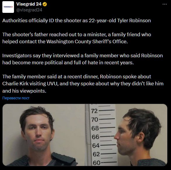 Мы все должны молиться за Чарли Кирка, в которого стреляли. Он отличный парень с головы до ног. Да благословит его Бог!