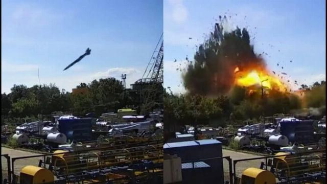 Удар КР Х-22 по Кременчугу, зафиксированный видеокамерой.