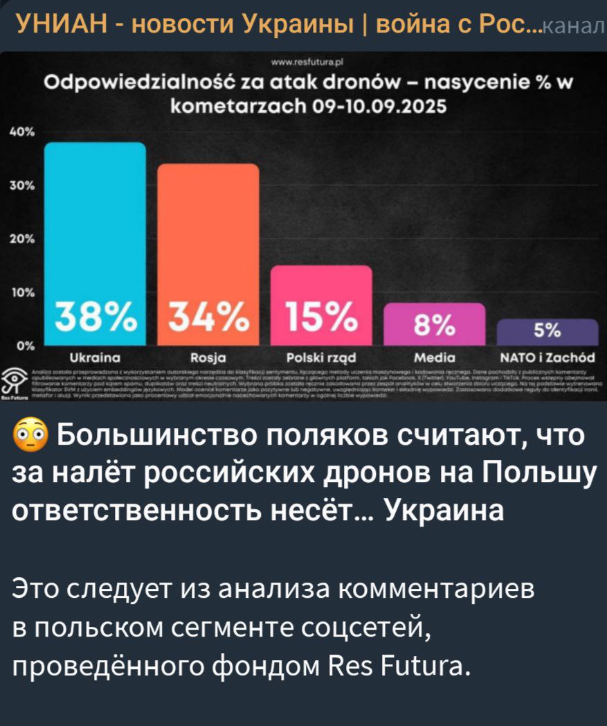 Также премьер Польши Туск официально заявил, что дроны, залетевшие на территорию страны, были российскими.
