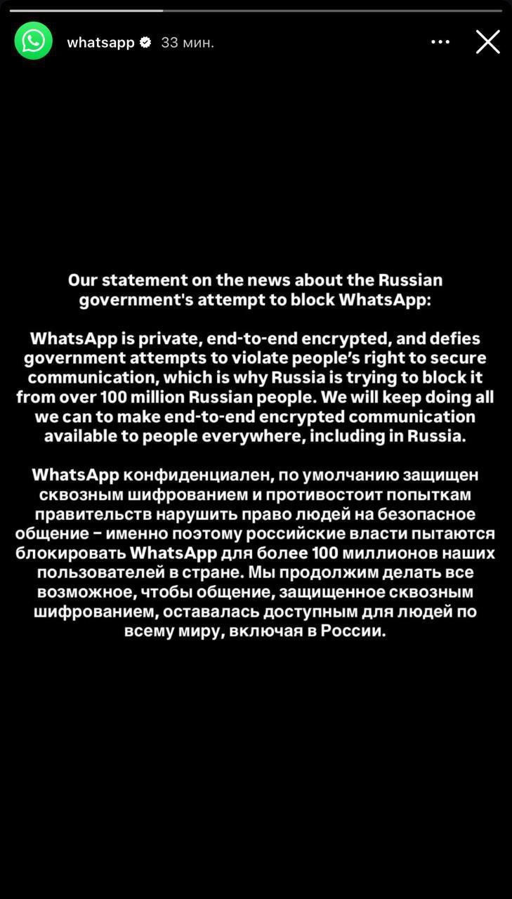 WhatsApp* официально объявил о борьбе с российскими властями