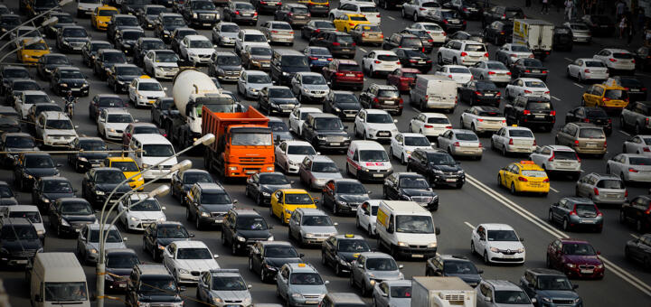 Автомобильная пробка на Зубовском бульваре в Москве.