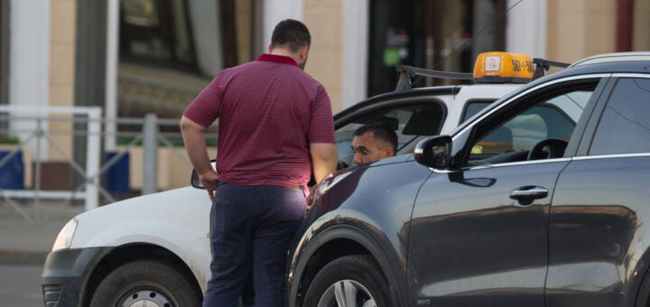 Таксист в маске с завязочками, сшитой как будто из ночнушки. Весь такой кругленький, домашний.