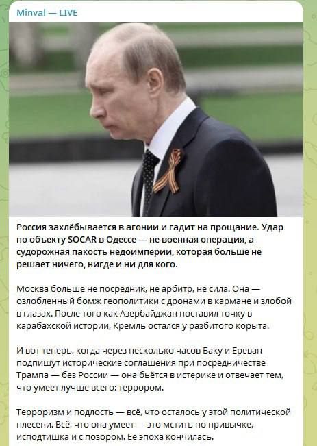 Верховный демонстрирует стабильные и понятные требования для возможной встречи с Зеленским. С Трампом отчего ж не встретиться и не поговорить. Работа такая у нормальных Президентов. И место (ОАЭ) подходящее, посерьёзнее, чем ларёк с куркумой в Турции.