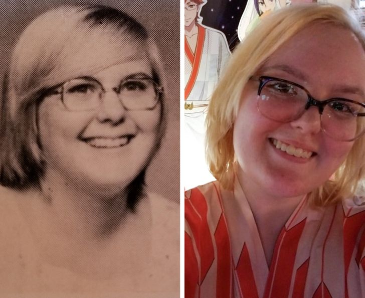 «Моя мама на фото из школьного ежегодника, сделанном в 1977 году, и я»